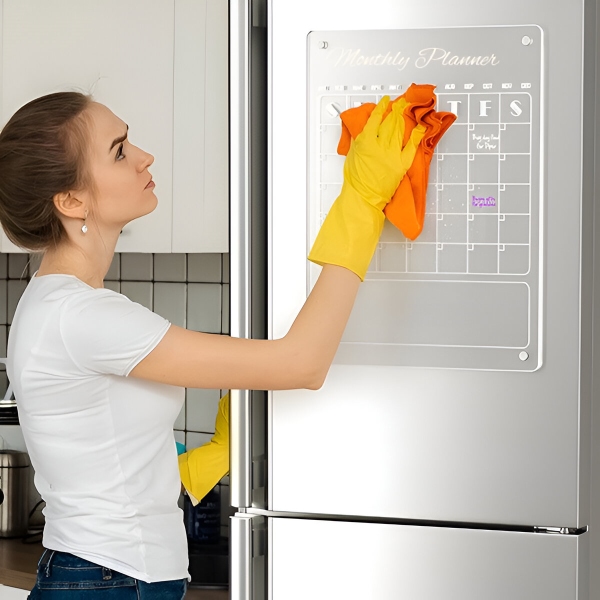 Nasz akrylowy kalendarz ma dużą siłę magnetyczną. Jeśli zajdzie potrzeba jego ponownego zamontowania, należy postępować zgodnie z prawidłową procedurą demontażu. Unikaj ciągnięcia go bezpośrednio w dół, ponieważ może to spowodować zarysowanie chłodziarki. Zachowaj ostrożność i obchodź się z kalendarzem ostrożnie.