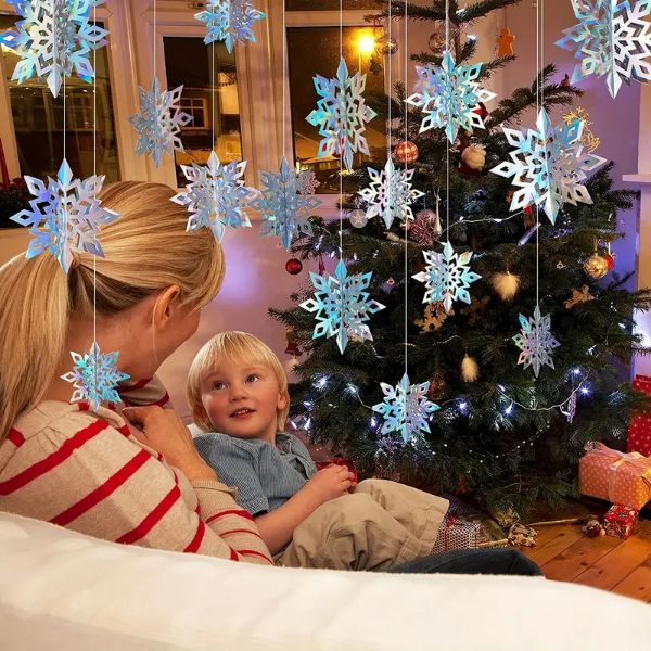 Te świąteczne, opalizujące, wiszące papierowe wycinanki w kształcie płatków śniegu nadają się na różne okazje, w tym jako dekoracje świąteczne w zimowej krainie czarów, dekoracje noworoczne, przyjęcia urodzinowe o różnej tematyce i świąteczne dekoracje do domu.