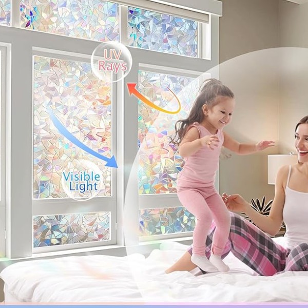 Gdy światło słoneczne pada na folię, tworzy ona hipnotyzującą tęczę kolorów w całym pomieszczeniu, ale nie blokuje naturalnego światła. Folia ta sprawdza się w każdym pomieszczeniu – salonach, łazienkach, biurach, a nawet szklanych drzwiach, dzięki czemu jest wszechstronnym rozwiązaniem dla różnych przestrzeni.